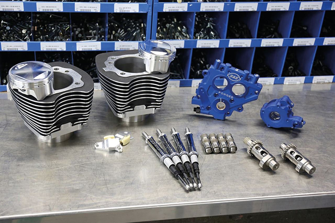 The S&S Power Package is the ideal combination of performance and savings to transform your Twin Cam into the leader of the pack, without breaking the bank. Bump the early Twin Cam from 88 to 100CI (1638CC) and late from 96 or 103 to 110CI (1803CC) as well as adding matched cams, cam plate, oil pump and everything else a high performance cam chest needs to make reliable big power. Kits include, 4" bore bolt-on cylinders with pistons and rings, your choice of chain drive or gear drive Easy Start 585 camshafts, TC3 oil pump, TC3 cam plate, Quickee adjustable pushrods with tubes, Premium tappets and all required bearings and gaskets.