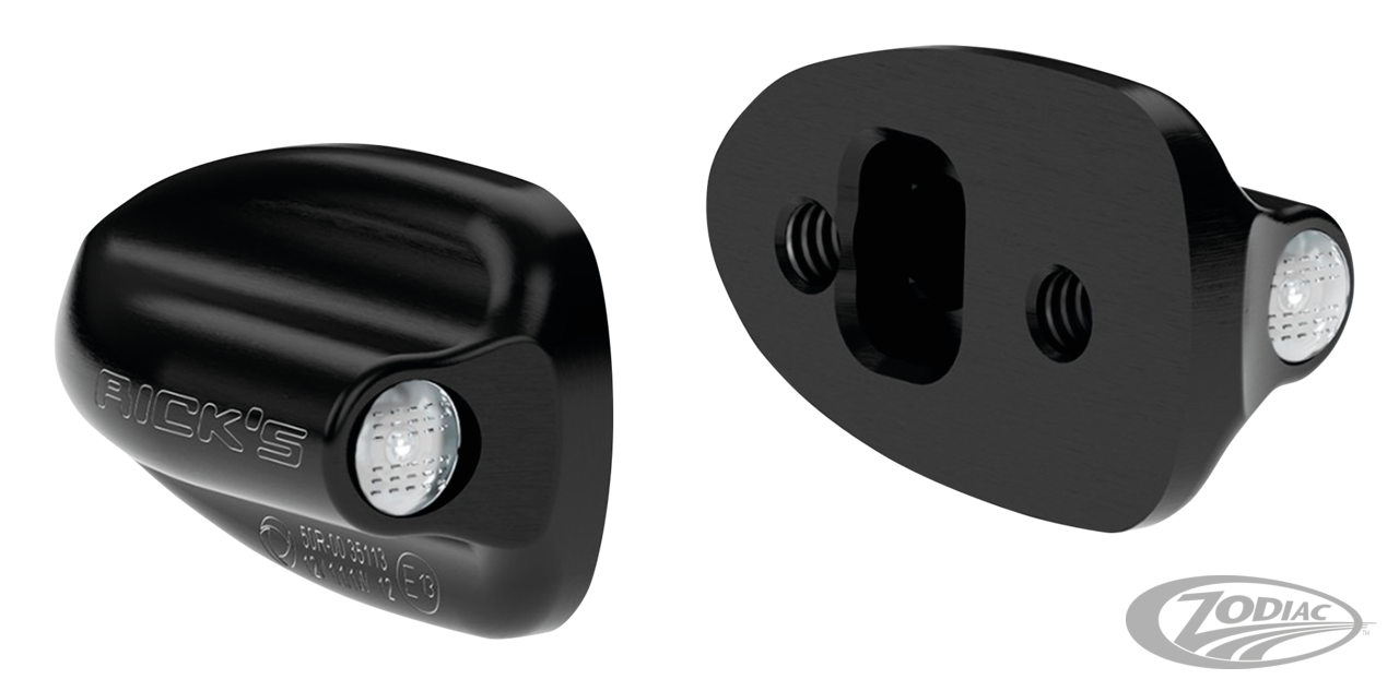 These black anodized aluminum housings feature E-approved Kellermann Atto turn signals. They bolt straight onto the OEM fairing bracket of Softail Low Rider ST and El Diablo. Strongly recommended to install together with Kellermann's i.Load load equalizer.