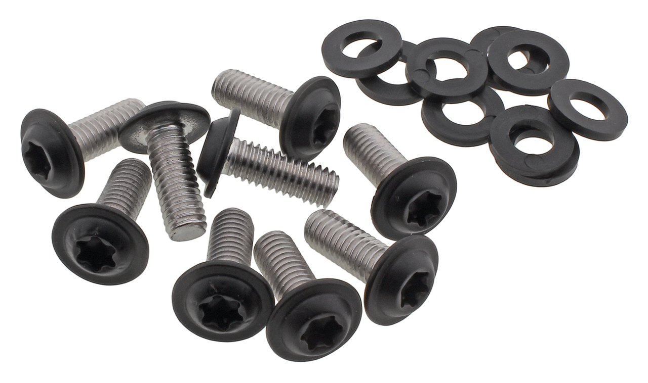 Stainless steel screws with matt black powder coated heads are the finishing touch for your bike.