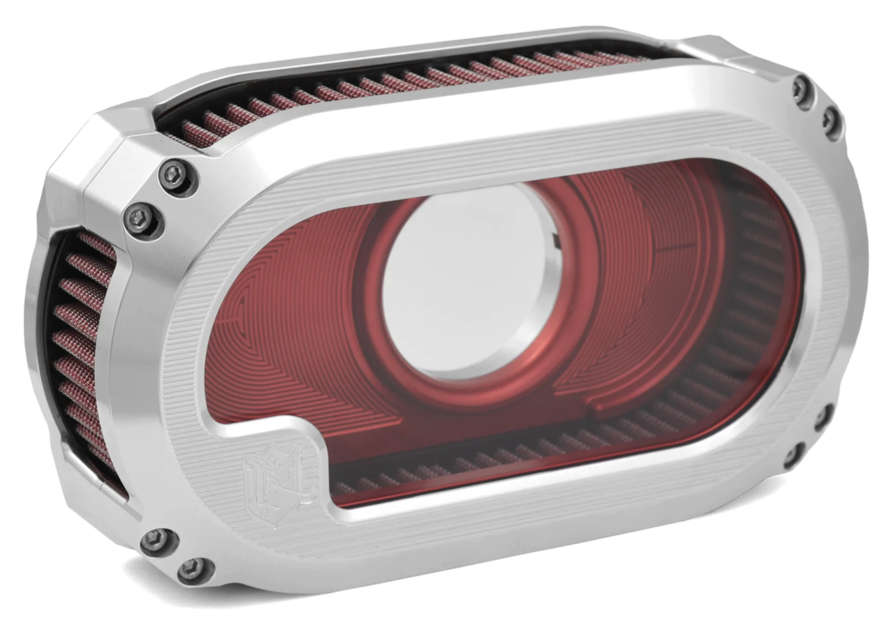 Billet aluminum air cleaners that increase horsepower and torque, while the clear polycarbonate top allows you to view the working of your intake system. Also features internal venting. The air filter element itself is made from pre-oiled cotton and is washable and reusable.