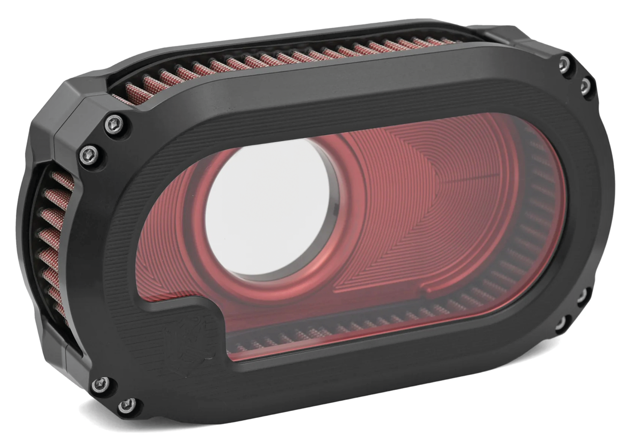 Billet aluminum air cleaners that increase horsepower and torque, while the clear polycarbonate top allows you to view the working of your intake system. Also features internal venting. The air filter element itself is made from pre-oiled cotton and is washable and reusable.