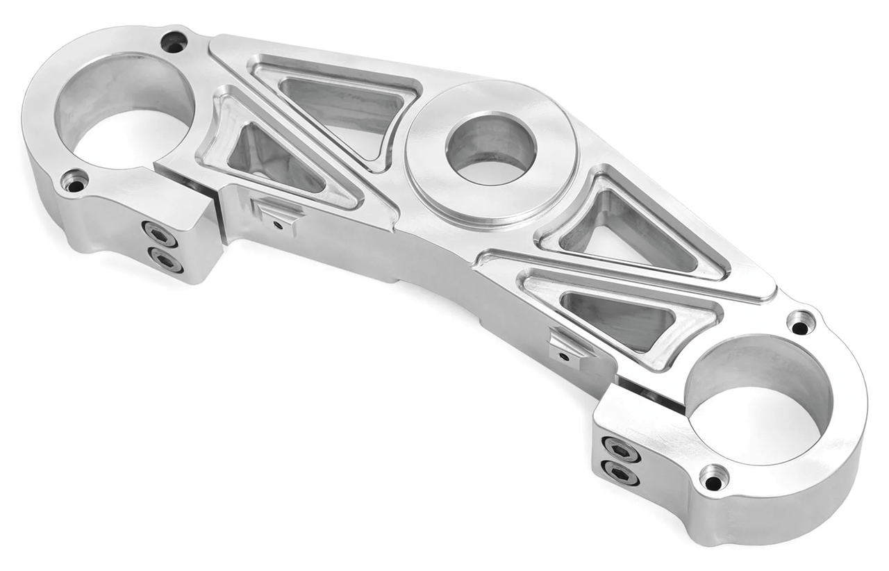 Please take the time to pay attention to the design details in these precision made and precision finished upper and lower fork yokes. Lower tree is to be installed with the OEM steer stem, you will need an hydraulic press to remove and install this. Upper and lower trees are sold individually so you can go for all black or all polished or any combination.