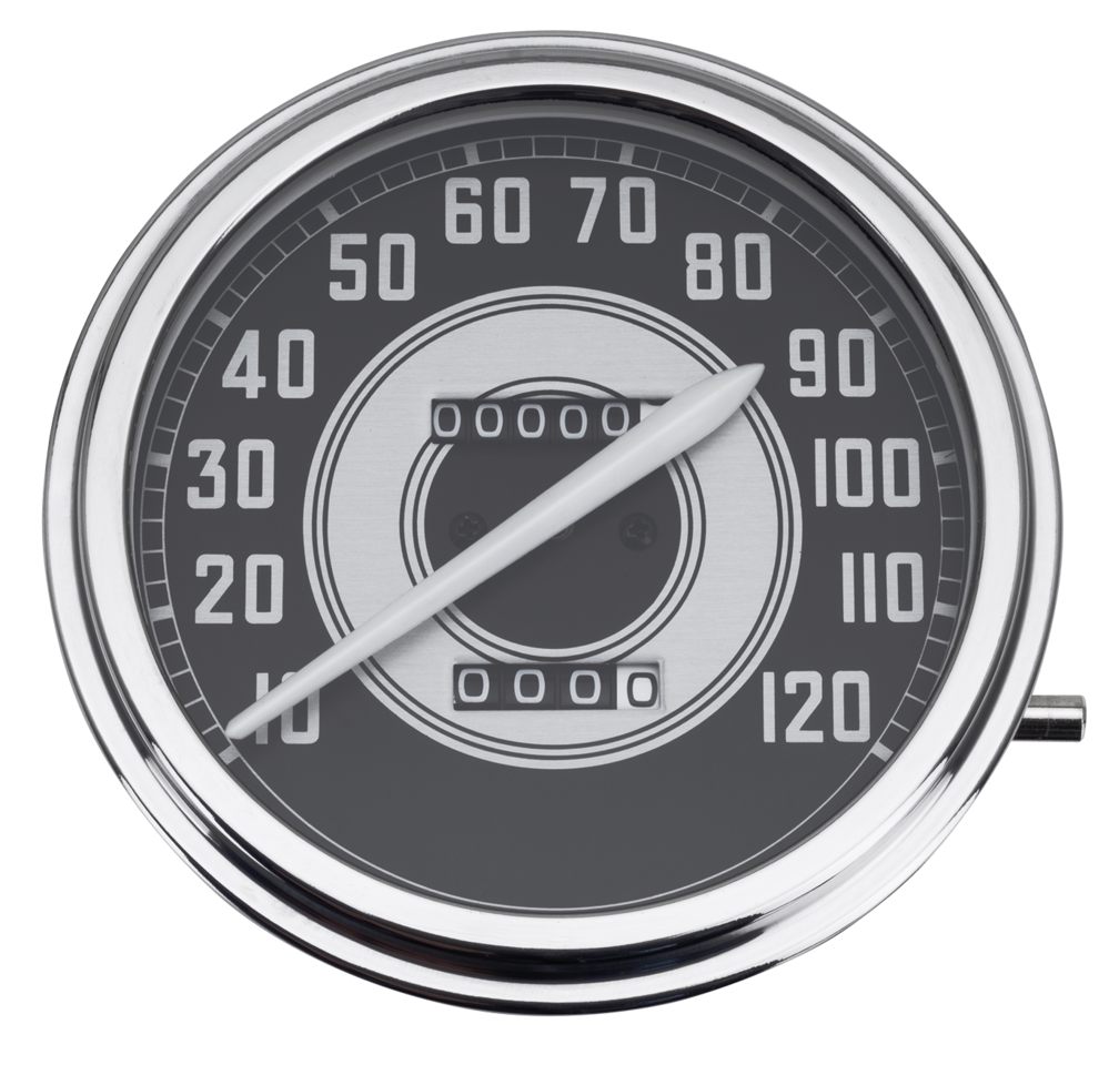 Replica speedometers with the right colors for the years listed. Scales are, like original, silk screened on glass. Speedometers feature a fitting for a speedometer drive cable with a 5/8" female nut like OEM 67026-62, are 2:1 ratio and come complete with trip reset knob.