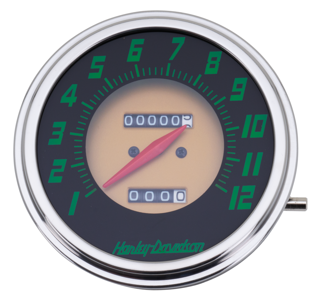 Replica speedometers with the right colors for the years listed. Scales are, like original, silk screened on glass. Speedometers feature a fitting for a speedometer drive cable with a 5/8" female nut like OEM 67026-62, are 2:1 ratio and come complete with trip reset knob.