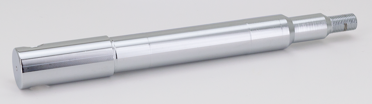 The widest selection of Chrome plated front and rear axles available today is offered to you by Zodiac. Axles for models as far back as 1936 and as recent as the latest models. Axle shaft is machined from heat treated Chrome-moly steel, triple Chrome plated, machine polished and then ground (after chroming) to a size tolerance of ±.0005". Rear axle nuts are penetration welded to the shaft and smoothly machined before polishing and plating. Please note that recent models often use the same OEM part number for the wheel axle, our kits however include the correct axle spacers for the models as listed.
