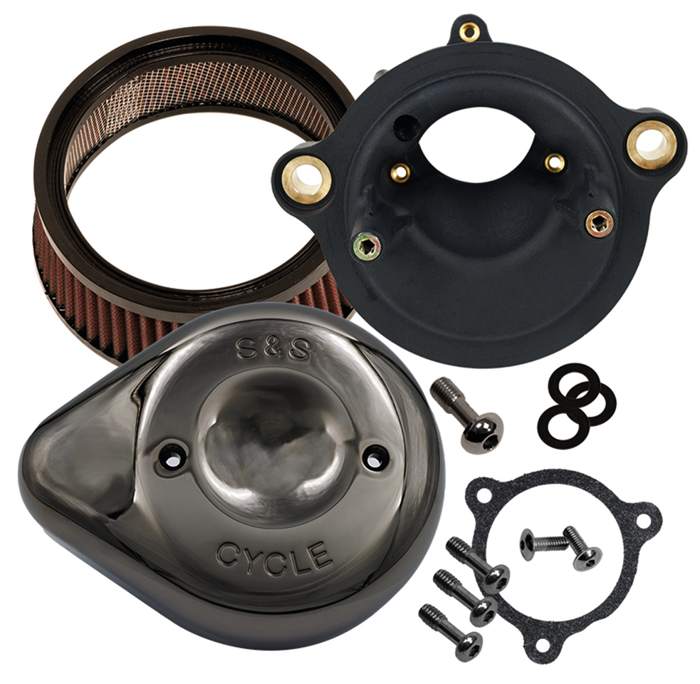 Created in 1975, the S&S Teardrop Air Cleaner has long been the iconic shape of v-twin performance. Adding to that legacy, the traditional size teardrop air cleaner with "Lava" dark chrome finish is combined with the S&S Stealth high flow air cleaner system for a simple install. Kits include the "Lava" dark chrome traditional size Teardrop cover, a backplate, washable filter element, hardware, and instructions.