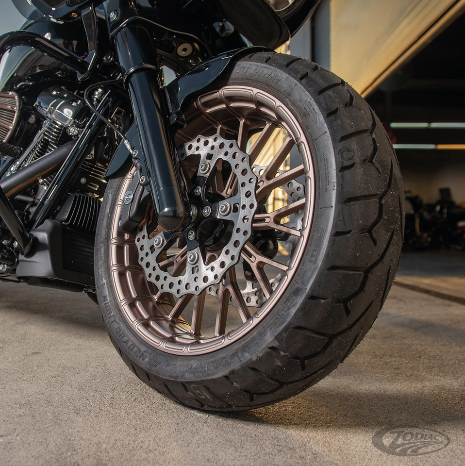 High performance floating brake rotors designed to enhance braking performance and style of factory or aftermarket wheels. Heavy Duty 420 Stainless Steel construction, drilled for optimum performance and heat dispersion and made for the weight of V-Twin & Touring motorcycles. All discs are sold each. We strongly recommend to install new brake discs with new brake pads. Unidirectional discs can be fitted left or right.