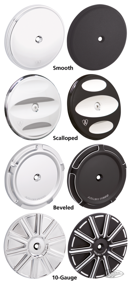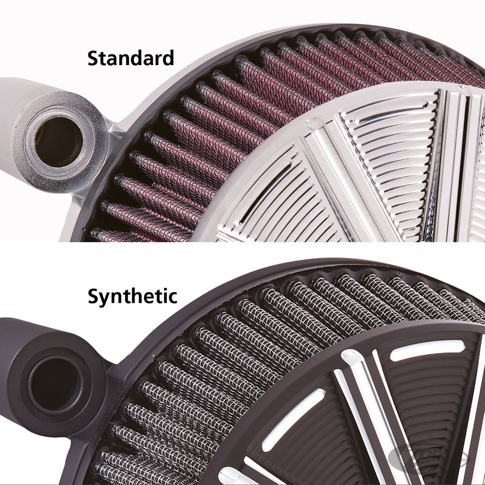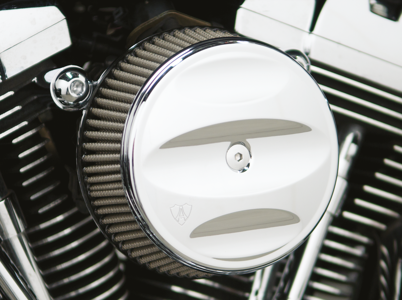 These high performance air filter kits feature an exposed air filter with a billet outer cover for great style and performance. Available with standard red filter element or weatherproof synthetic filter element. Optional pre-filter for the standard red filter, also known as rain sock is available separately.