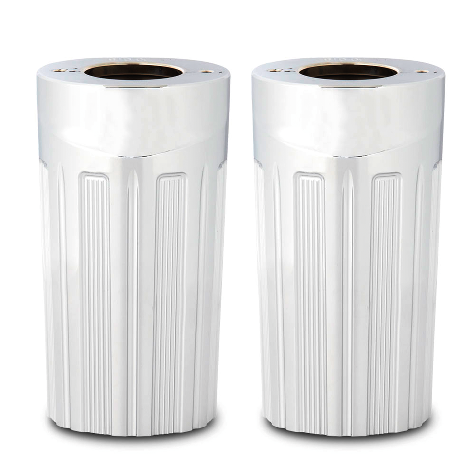 Radically change the look of your front end. Replaces the OEM lower fork leg covers. Machined from forged 6061-T6 billet aluminum. Also available in 2" longer than stock for use with over stock fork tubes. Sold in pairs.