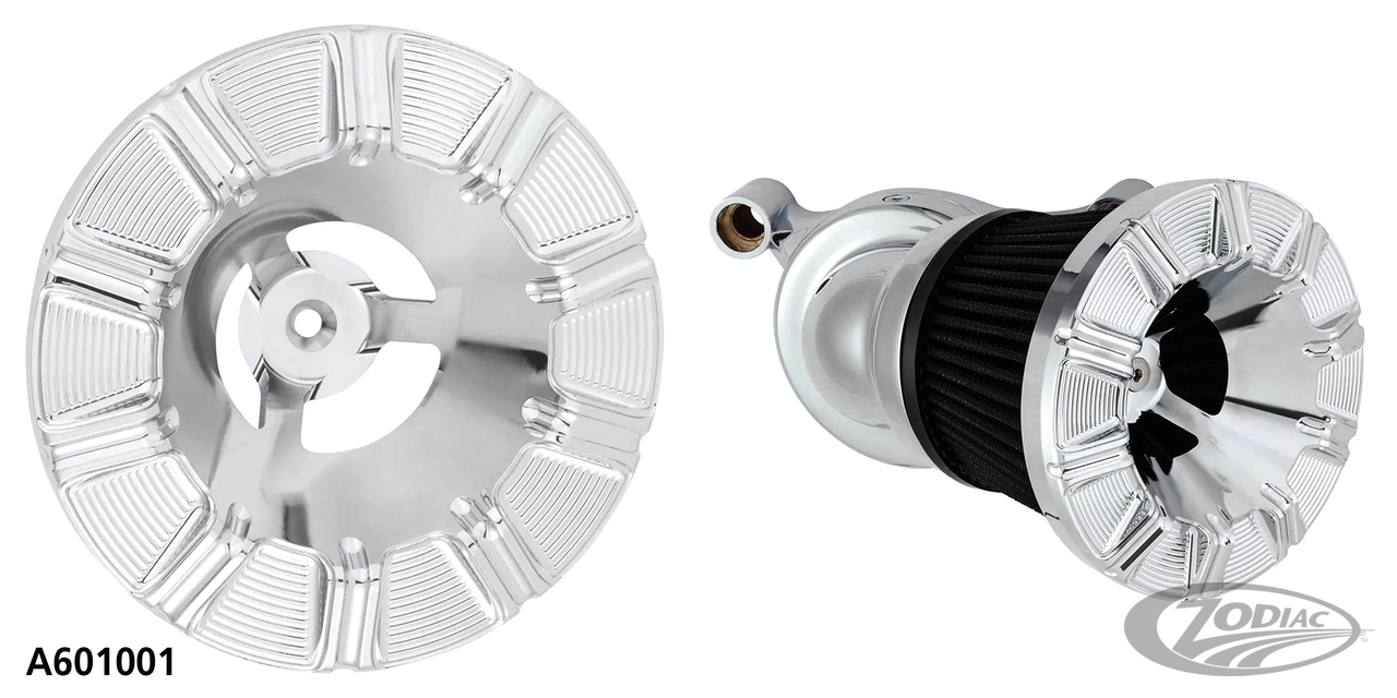 Velocity performance air cleaners feature a forward-facing intake design positioned at a 65- or 90-degree angle. The intake's angle and specially designed air filter combine to result in some of the highest air flow numbers.