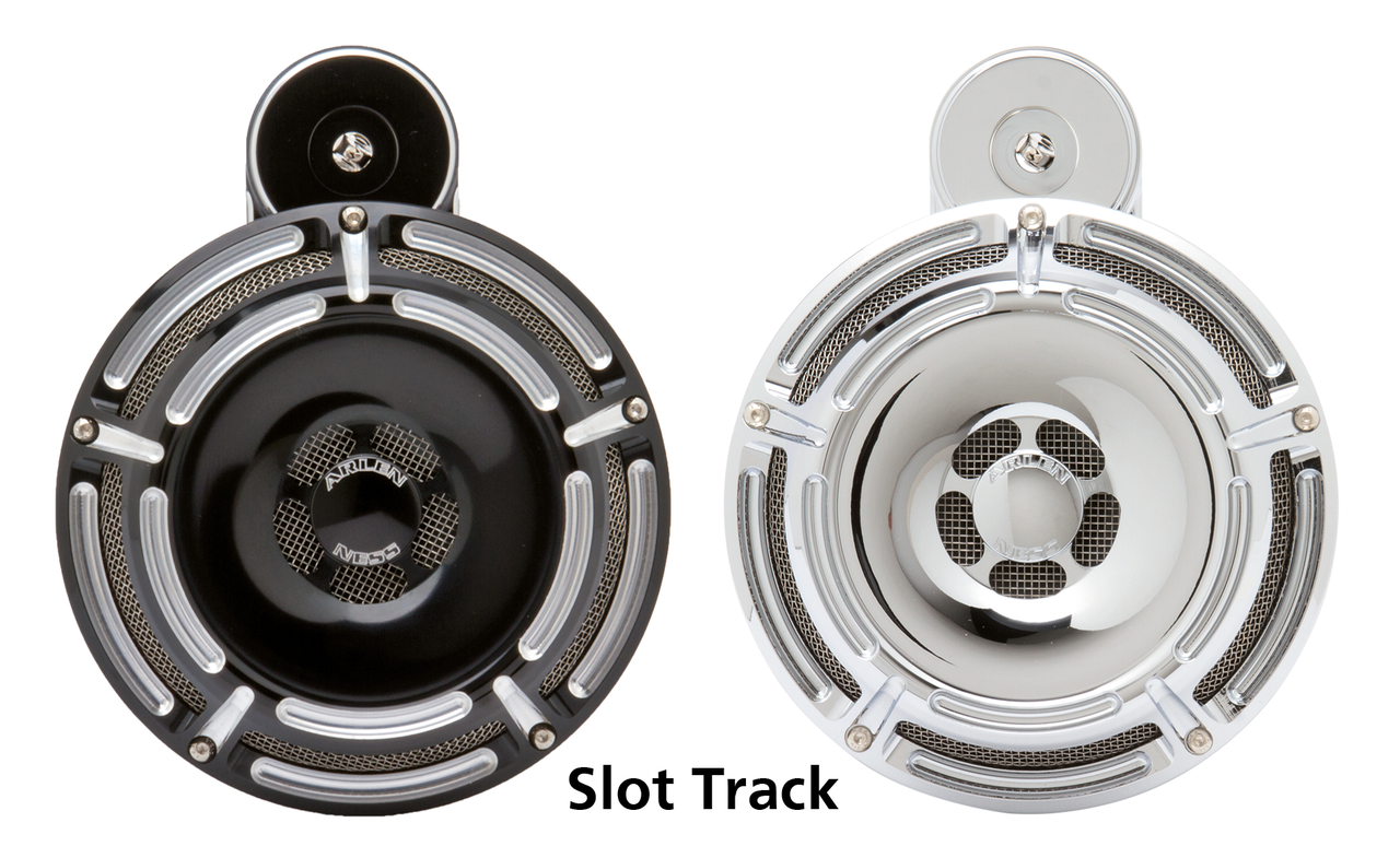 Complete horn kits made from forged billet aluminum and stainless steel mesh. Great styling, but also compact in size to allow for leg clearance. Available in 4 different models in chrome or black anodized, with steel brackets for Sportsters and steel brackets for the universal applications, which are great for Customs, Softail and Dyna models. These powerful horns are easy to install and capable of a noise level of 110dB(a), making sure you are heard when you want to be. Looks great with a matching Arlen Ness Inverted Air Cleaner kit.