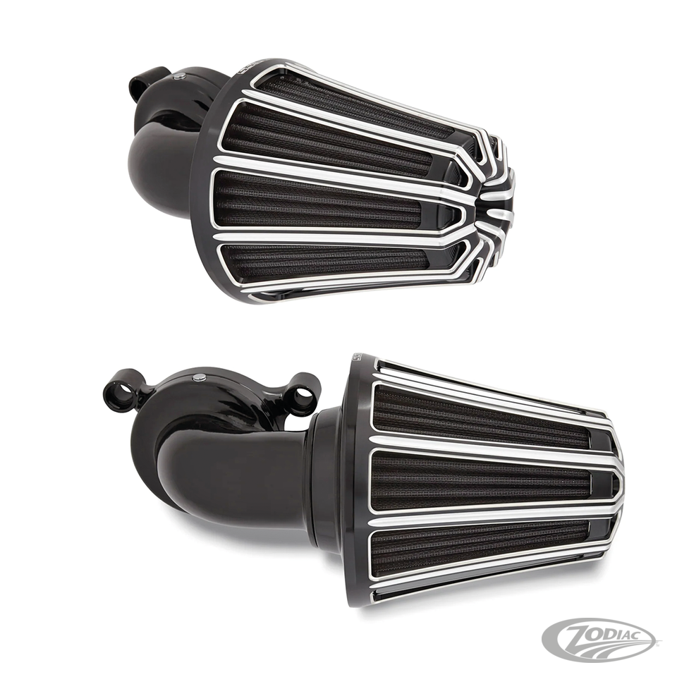 Monster Sucker kit features the patented Big Sucker "hidden breather" technology. Breathers are o-ringed at the cylinder heads and exits out to the mouth of the throttle body or carburetor to provide efficient engine breathing, eliminating the need for any external hoses or hardware. Filters feature a built in inverted top to pull in air not only from all sides of the filter but also the front, which results in more performance gaining airflow. Filters are constructed from synthetic material that is water resistant, which in most cases eliminates the need for a rain sock. Filters are re-usable and do not require oil, just rinse and re-use. Ness Monster Sucker air cleaners can be used with or without cover. The accessory rain sock can only be used without a filter cover.