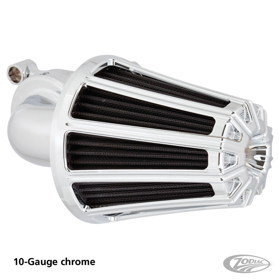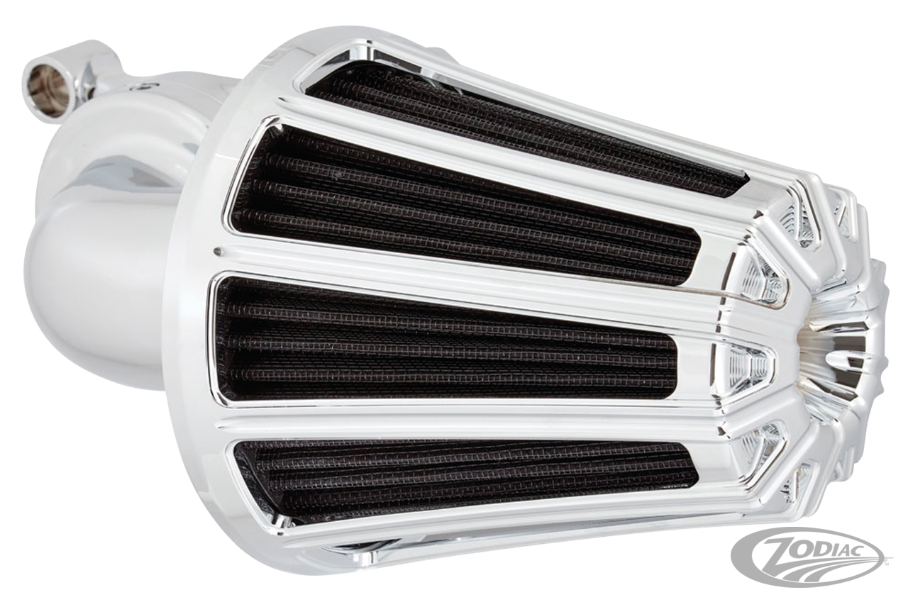 Monster Sucker kit features the patented Big Sucker "hidden breather" technology. Breathers are o-ringed at the cylinder heads and exits out to the mouth of the throttle body or carburetor to provide efficient engine breathing, eliminating the need for any external hoses or hardware. Filters feature a built in inverted top to pull in air not only from all sides of the filter but also the front, which results in more performance gaining airflow. Filters are constructed from synthetic material that is water resistant, which in most cases eliminates the need for a rain sock. Filters are re-usable and do not require oil, just rinse and re-use. Ness Monster Sucker air cleaners can be used with or without cover. The accessory rain sock can only be used without a filter cover.