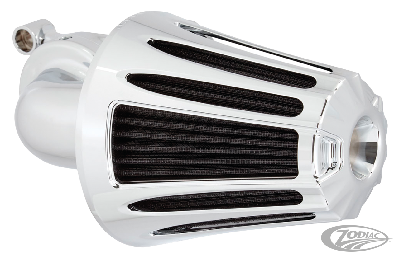 Monster Sucker kit features the patented Big Sucker "hidden breather" technology. Breathers are o-ringed at the cylinder heads and exits out to the mouth of the throttle body or carburetor to provide efficient engine breathing, eliminating the need for any external hoses or hardware. Filters feature a built in inverted top to pull in air not only from all sides of the filter but also the front, which results in more performance gaining airflow. Filters are constructed from synthetic material that is water resistant, which in most cases eliminates the need for a rain sock. Filters are re-usable and do not require oil, just rinse and re-use. Ness Monster Sucker air cleaners can be used with or without cover. The accessory rain sock can only be used without a filter cover.
