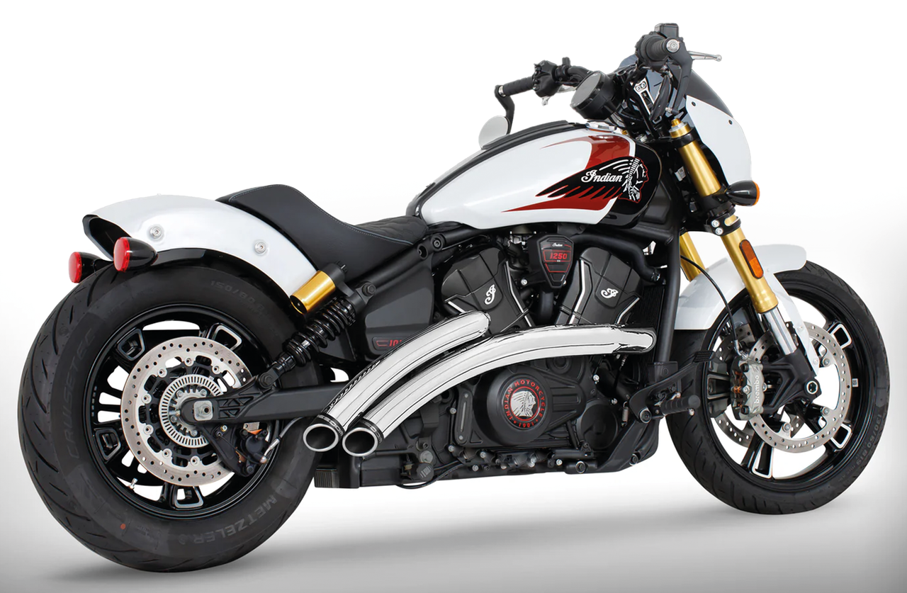 Freedom Performance Radical Radius exhausts feature one piece 2 1/2" (64mm) outer diameter 16 gauge heavy duty heat shields that cover the headers for a full 220 degrees and they have a three-step header system for optimal horsepower and torque. The curved mufflers give an aggressive deep growl. Baffles are removable, and a quiet baffle kit is available as an accessory. These exhausts come complete and ready to bolt on and include stainless steel hardware and brackets.