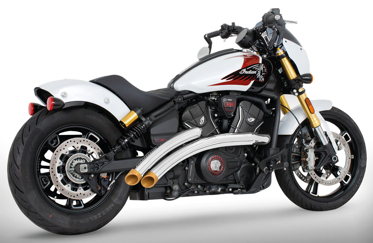 Freedom Performance Radical Radius exhausts feature one piece 2 1/2" (64mm) outer diameter 16 gauge heavy duty heat shields that cover the headers for a full 220 degrees and they have a three-step header system for optimal horsepower and torque. The curved mufflers give an aggressive deep growl. Baffles are removable, and a quiet baffle kit is available as an accessory. These exhausts come complete and ready to bolt on and include stainless steel hardware and brackets.